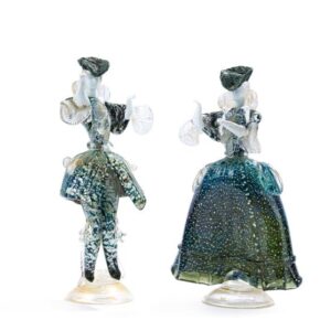 «Goldoni» Pareja de figuras en vidrio soplado de Murano.